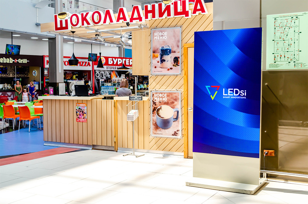 Прозрачные медиавитрины для торговых центров, магазинов и кафе. Привлекают внимание покупателей, выделяют на фоне конкурентов